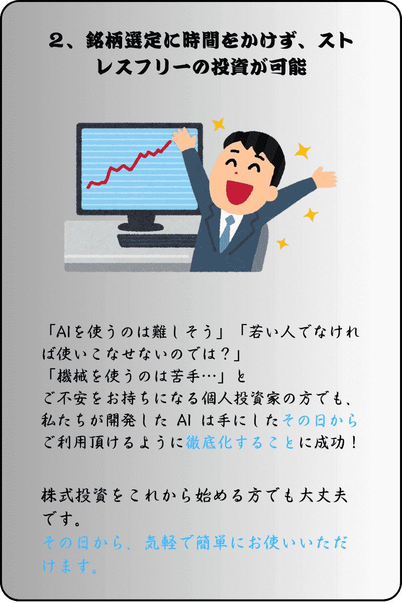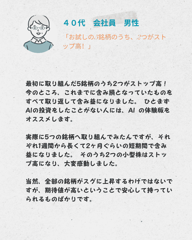- ※LINEを追加して 「おすすめ」と送信すると、知りたいまたは保有している株の分析情報を無料で取得できます。